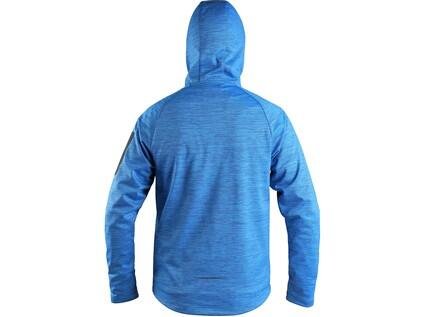 Pánska softshellová bunda, odolná proti vode a vetru, zapínanie na zips, kapucňa napevno, malé vrecko na ľavom rukáve, bočné vrecká na zips, sťahovanie v dolnom okraji, reflexné doplnky, TPU membrána. Odolnosť materiálu proti prieniku vody 8 000 mm mimo oblasti švov, paropriepustnosť 3 000 g/m2/24h.