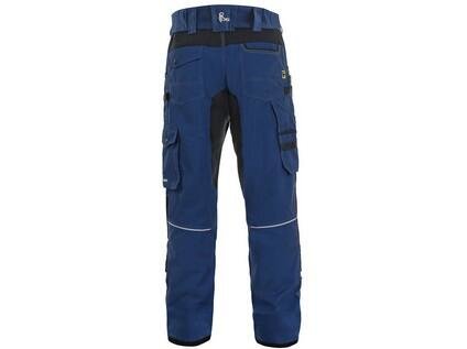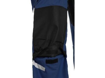 Pánske montérkové nohavice, strečová tkanina umožňujúca voľný pohyb, pás s pútkami na opasok, predné vrecká s vreckom na zips, multifunkčné vrecká na oboch stranách, kolená zosilnené 600D polyesterom s možnosťou vloženia kolenných výstuh, dve zadné vrecká - jedno s klopou, zadné spodné nohavice vystužený 600D polyesterom, reflexné doplnky.
