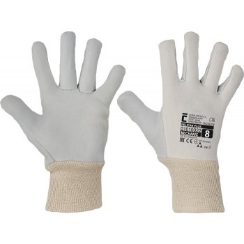 Rukavice šité z jemnej lícovej ovčiny v dlani, bielej bavlnenej tkaniny na chrbte a s nápletom.