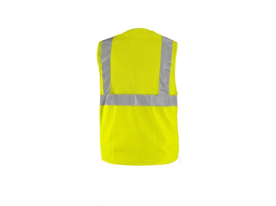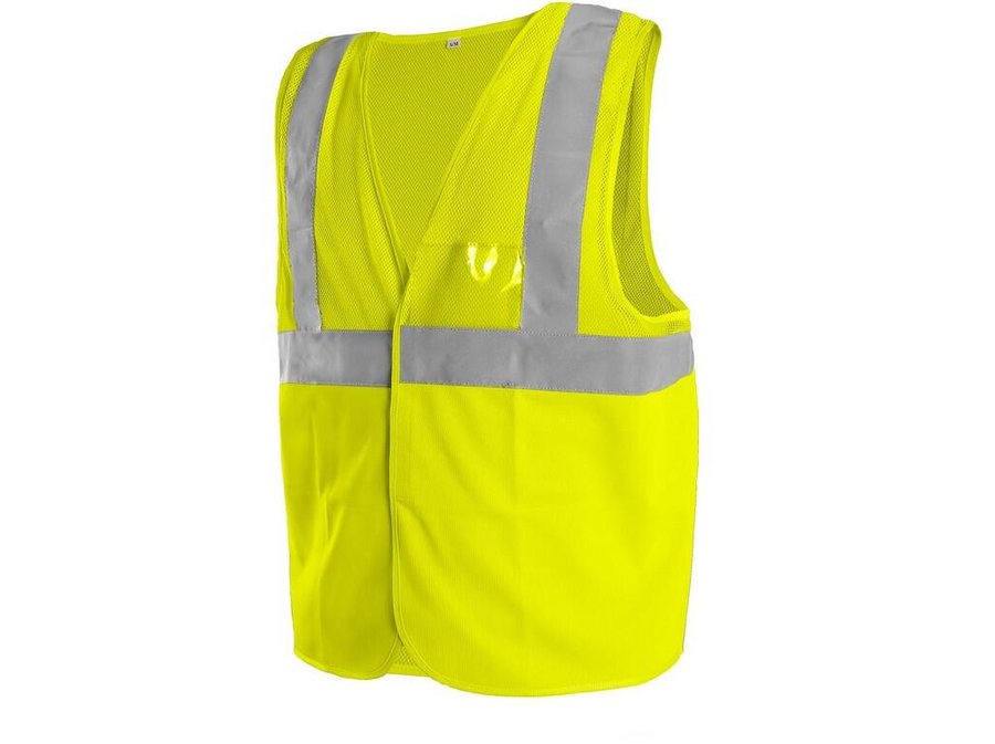 Výstražná vesta, horizontálne aj vertikálne reflexné pásky, zapínanie na suchý zips, vľavo hore priehľadné vrecko na ID kartu, horná sieťovaná časť umožňuje maximálnu priedušnosť a pohodlie.