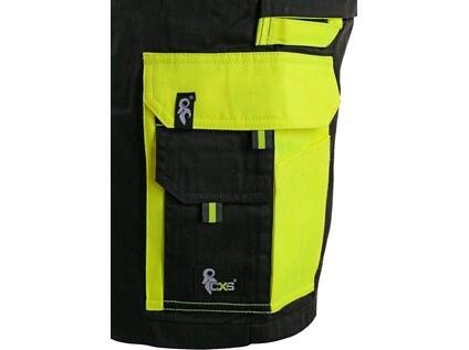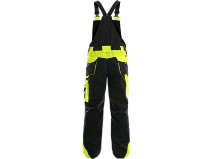 Pánske montérkové nohavice zateplené flanelom, s náprsenkou, náprsné vrecko s klopou, pás s pútkami na opasok, predné klinové vrecká, multifunkčné vrecká na oboch stranách, kolená zosilnené materiálom 600D polyesterom s možnosťou vloženia kolenných výstuh, dve zadné vzadu, reflexné doplnky.
